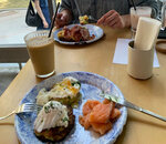 Завтрак люкс и оладьи из цукини прекрасные, рыба очень нежная, особенно белая копчёная. Кофе сделан очень профессионально. В целом идеальный баланс между качеством, расположением и ценами, всё очень гармонично. Небольшое по посадке но очень уютное, hidden jem! 👍
