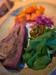 Пастрами с печеным бататом и цветной капустой