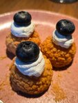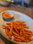 Нежный паштет выкладывается на теплый кукурузный хлеб, затянутый сыром чеддер. Подаётся с солёной карамелью, халапеньо и орехами.