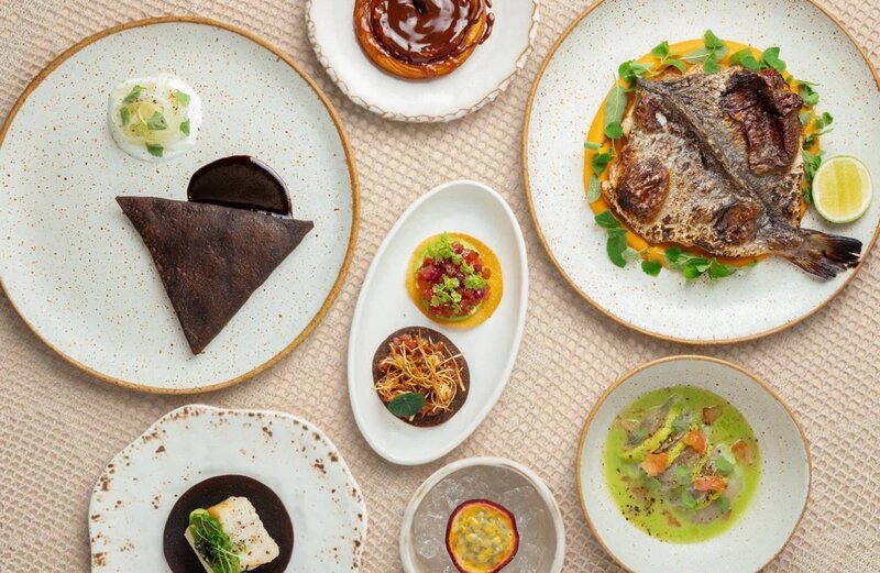 Состав сета: Тостада с лососем, Тако брискет, Макарон из авокадо с тепаче, Тако с палтусом и тамарилло, Аквачили с креветкой, Утиная грудка с моле поблано, Чуррос