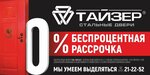 В магазине "Тайзер" приобрели отличную входную дверь, которая идеально вписалась в интерьер и надежно защищает от шума и холода. Установка прошла быстро и качественно, мастера проявили профессионализм. Выражаем благодарность за отличный сервис и качественную продукцию! Всем рекомендуем магазин "Тайзер" для покупки надежных входных дверей!