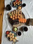 Суши очень вкусные, размер впечатляет. Все очень свежее. Сделаны качественно с любовью. Заказываем уже не первый раз. Есть с чем сравнивать. Это лучшее по качеству и цене. Есть много акций и скидок. Очень приятно. Спасибо большое.