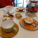 Вкусные десерты, чай. Внутри очень уютно