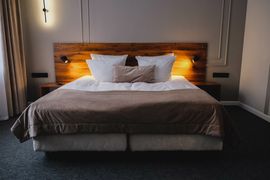 Из плюсов: 1) красивая ухоженная территория с пирсом, детская площадка. 2) есть чем заняться, то что мы успели: сапы и велосипед в аренду, бесплатная йога утром, настольный теннис. 3) небольшой ресторан с разнообразным меню (единственное не было сухого игристого по бокалам в наличии), плотные завтраки, есть выбор. 4) вежливый персонал) Из минусов: 1) нам достался номер из старого номерного резерва: тут минус ковролин с пятнами. 2) акватеримальная зона нуждается в реконструкции: старая и уже ржавая плитка в бассейне, одна из двух саун не работала, в целом неуютно. Массажистка была в отпуске, хотя в прайсе была информация про массаж.
