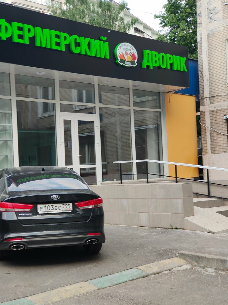Фермерский магазин с ассортиментом мяса, овощей, фруктов, солений и сладостей и многое другое. Натуральное качество продуктов. Фирма работает 20 лет и переехали из ближайшего магазина рыночного плана, открыв свою точку.