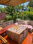 Отдыхали здесь , очень отличное место за такие деньги. Море минут 5 пешком . Здесь есть все необходимое, три душа , три туалета, новая кухня . Рядом с каждым номером своя вешалка и стол для обеда . На кухне вся необходимая техника , посуда , есть стиральная машина. Отличный гостевой дом и приветливый хозяин. Очень бюджетно и отличный вариант за такую сумму. Рекомендую!