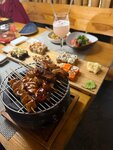 Помещение большое, но соблюдены мини пространства, что создает определенную камерность и уют. Еда.... Тут кому что нравится. Баклажаны хрустящие на четверочку . Хочу предупредить. Официанты с улыбочкой настаивают на оплате по qr коду на столе. И... Внимание . при таком варианте оплаты списываются чаевые в размере 15 процентов