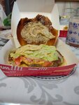 Не рекомендую! Даже ребенок сказал, фу невкусно тут. Бургер холодный и один лук внутри, фри отлежавшаяся, наггетсы безвкусные, кола разбавленная. Больше не придем!