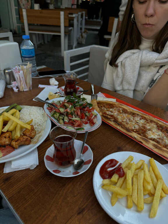We were walking by and decided to eat here, as we saw that the locals were eating. Friendly and attentive staff, very tasty, even French fries and rice. They immediately gave me Wi-Fi, brought me a hot flatbread and tea as a compliment. We were served quickly. We are satisfied. Iskender was beautiful. The meat and sauce are wonderful