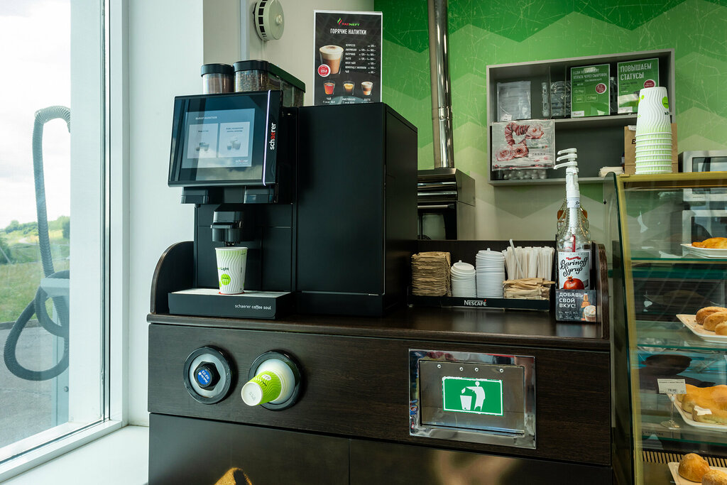 Хороший бензин,цена приемлемая.54,72 за литр 92ого. Есть столики,где можно поесть. Первое,второе тоже есть(замороженное,разогревают в микроволновке) Минус одна звезда-туаленую комнату хорошенько не помешало бы хорошенько отмыть. Персонал приветливый.