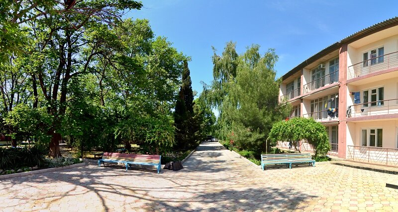 Отличное место для тихого семейного отдыха. Море в 10 минутах ходьбы по шикарной тенистой аллее. В пансионате огромная территория. Своя столовая. Конференция и танцзал. Спортивная площадка. Детская площадка. Чудесное место