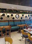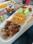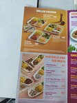 The format is chicken/side dish/salad on one plate - long or square. The food is not bad, but the service is long. If you see delivery couriers, know that they will be served first, and you will wait. Apparently their priority is delivery.