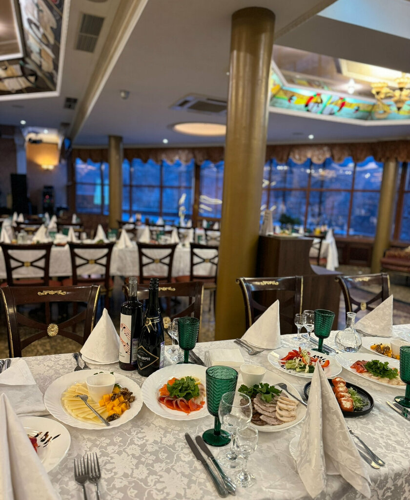 Хорошее меню, вкусные блюда. Прекрасная живая, музыка. Отмечали несколько юбилеев все на высшем уровне. Спасибо
