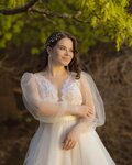 I was very pleased with the choice, the only place where beautiful modern dresses were offered for my size 48 for adequate money. It was here that I was heard (the request was for a light, airy dress with airy sleeves for a spring wedding). Especially for me, they sewed sleeves into the model I liked and offered beautiful twigs in my hairstyle as a bonus 🥰