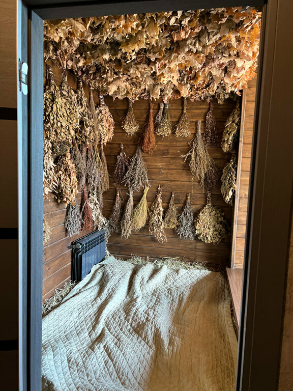 Прикольный банный комплекс. Высокий уровень комплекса. Ближе к бизнес-классу. Отдельная сауна, чан, есть бассейн с холодной водой на выходе из сауны с выходом на улицу. Беседка. Но мне больше всего нравится, качеля и травяная комната.