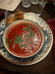 Пришли в ресторан поздно. На большую компанию заказ у нас приняли. Но потом, оказалось, что нет того, нет этого. Нет водки, но можем принести виски. Нет хаша, но есть харчо и борщ. В итоге харчо был очень жирным, а борщ слишком кислым. Хинкали , грузинская кухня, вот они оказались на высоте. Красиво оформленный интерьер, фотозоны. Нафоткались, и то хорошо. Здание в стиле модерн и вход в виде замочной скважины. Итог: дорого, помпезно и не очень вкусно.