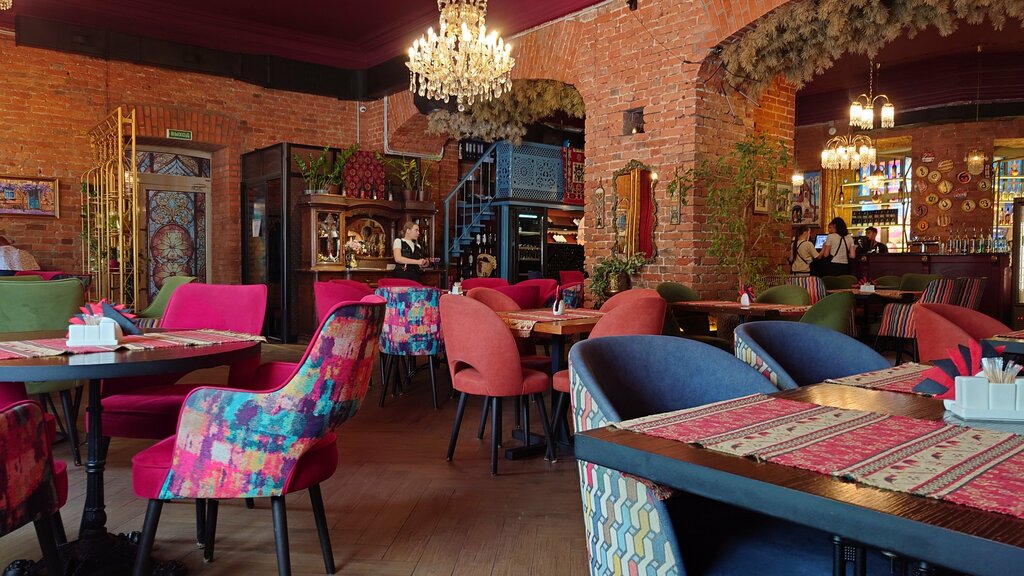 Интерьерно-традиционная обстановка, много зелени, много красивого текстиля, дерево, папахи, овчина, всё, как чувствуешь Грузию в России. Заведение со вкусом украшено к Новому году. 1.Кухня прекрасная. - Салаты -порции большие. - Мясных блюд разнообразие, и если написано мясо - его будет реально много и вам будет очень сытно. Если есть гранат в составе-значит по -грузински, крупные и спелые. - Очень вкусный лимонад-сок собственного производства. - Все хлебо-булочные изделия - выпечка по типу лаваша и прочих лепёшек грузинской кухни. Вкусы у всех разные, можно уже конкурс ресторанных поваров устраивать на хачапури Вологды. Эти мне понравились, не смотря на то, что ела я их остывшими, пришла позднее подачи. - Сырную тарелку с домашними сырами испробовать не удалось, но по сырами в блюдах ясно, что тут умеют их делать или заказывать) 2. Персонал вежливый, доброжелательный, предоставили помещение для подготовки к конкурсам. Обслуживание быстрое, отличное, со стола убирается грязное своевременно. 3. Средний счёт от 1600, без алкоголя, пробковый сбор есть. 4. Грузинская спокойная музыка создаёт прекрасную камерную атмосферу для общения, бесед. Подойдёт для бизнес-ланча, встреч для договоренностей, для души. Не хватает живой музыки, для католического Рождества ожидаешь каких-то задумок (24-25.12.) 5. Туалеты чистые, аккуратные. 6. Для именинника не предложены дополнительные опции. Есть шикарный отдельный зал для торжеств. Место незаслуженно малопосещаемо, но думаю тот, кто открыл Тбилиси для себя, сюда возвращается. Такой уровень поддерживать в более известных местах сложно, но как написала выше, конкурс Хачапури стоит провести и сравнить умения поваров заведений. Удачного развития ресторану!