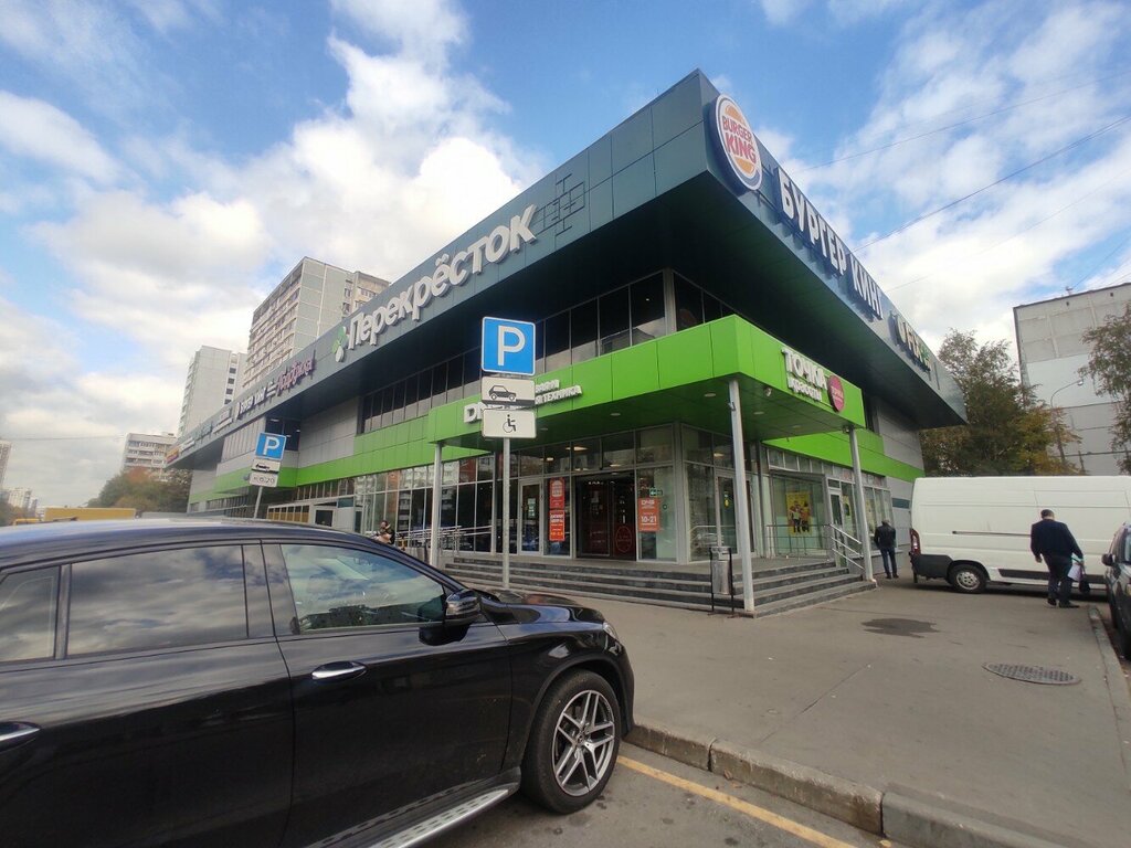 Небольшой ТЦ. Хожу в него очень часто, так как рядом с домом. Есть все необходимое: Перекресток, аптека, Подружка, Бургер кинг, ДНС, Фикс прайс. Еще есть маникюр, точка красоты, хозяйственный, дисконт центр (аналог магазина смешные цены), ремонт часов и сейчас сделали прилавок с сухофруктами/орехами. Все магазины чистые, с хорошим ассортиментом. Есть туалет (и не только в Бургере). Парковка перед ТЦ платная, городская; бесплатно только во дворах (но там очень много машин, припарковаться можно с трудом).