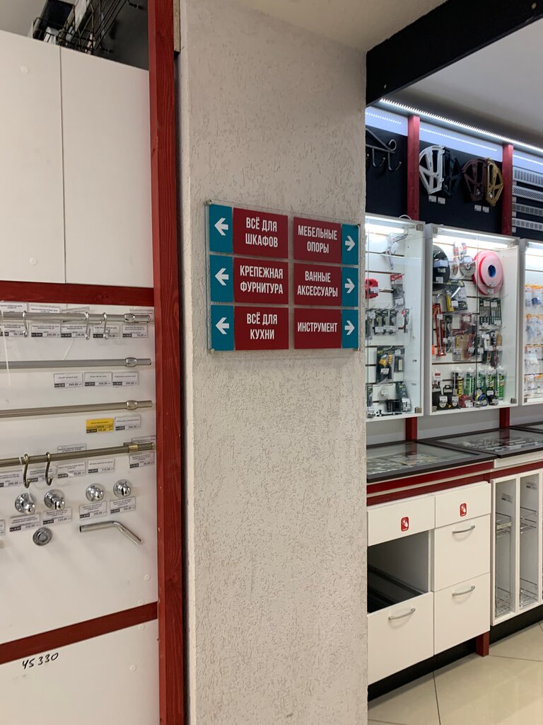 Очень большой ассортимент фурнитуры для кухонь. Адекватные цены. Многое есть в наличии. Несколько магазинов по городу, рядом с метро.