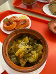 Хорошая и вкусная домашняя еда. Два зала с посадочными местами. Несколько микроволновок для разогрева еды. Есть умывальник, чтобы помыть руки, но нет туалета. Единственный туалет находится слева за парковкой от главного входа в монастырь. Также очень вкусная еда и сбитень в палатке у входа в монастырь. Там тоже монастырская еда.