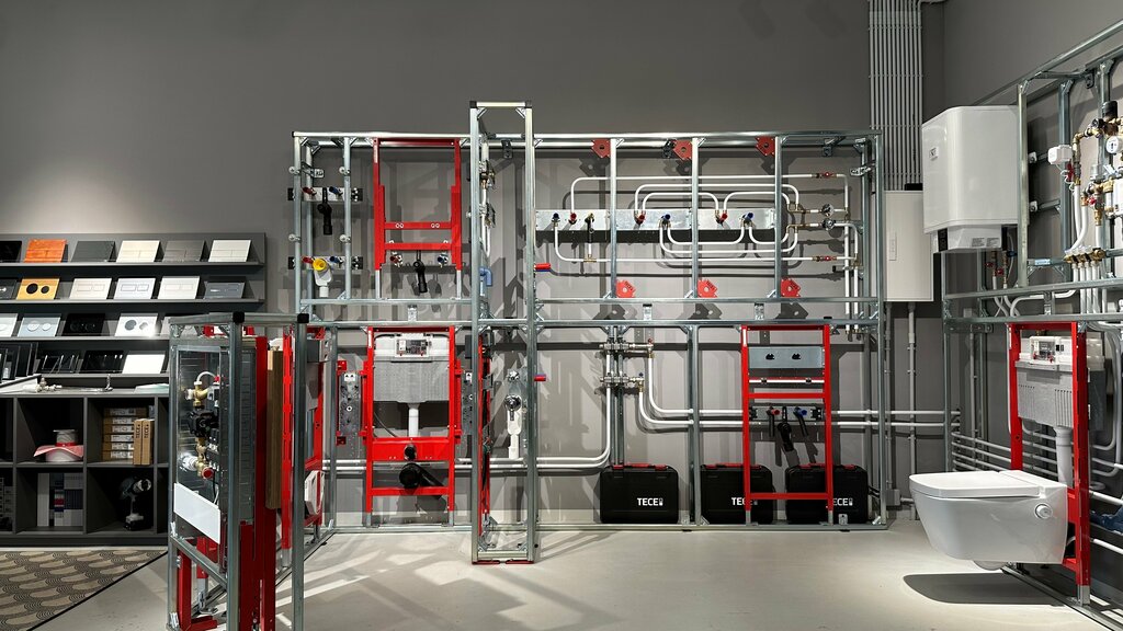 В шоуруме представлен весь ассортимент инженерной сантехники Tece, показаны разные технические решения. Можно заказать проект водоснабжения и отопления