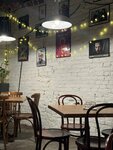 Вас накроет ностальгия по советскому детству:добрые советские открытки ,пластинки,флажочки. Приятная атмосфера,создано новогоднее настроение и атмосфера. Из минусов: нет альтернативного молока, выбор чая тоже не богат. неудобные стулья. Обслуживали нас через барную стойку.Мы не королевских кровей,но все же мы сидели за столиком.
