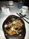 Кухня здесь действительно на уровне: блюда вкусные, порции щедрые остаётся только хвалить. Интерьер уютный, приятно находиться в зале. Да, с подачей в этот раз были небольшие заминки, заказ приносили не сразу и не одновременно. Но зато, когда еда наконец появилась, всё оказалось очень вкусным и стоило ожидания. Особенно понравилось, что горячее было свежим и ароматным.