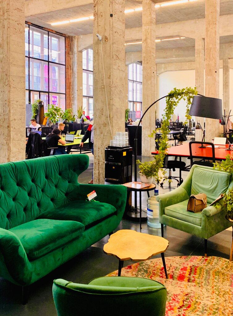 Это огромное пространство в здании Телеграфа, площадью 1300 кв.м. с коворкингом на 450 рабочих мест и просторной зоной для мероприятий. Здесь постоянно что-то проводится: конференции, корпоративы, выставки, семинары, ярмарки, вечера кино и т.д. Чтобы попасть сюда, нужно потрудиться: есть сложности с парковкой (но в такой близости от Кремля это неизбежно), сам подъезд довольно незаметный (подсказка: нужно свернуть с Тверской в сторону Макдоналдса и пройти по Газетному переулку до церкви). Подняться на 5-й этаж можно либо на лифте, правда он старый и медленный, либо пешком по лестнице, только учтите, что один этаж здесь — как 3 в обычном панельном доме. Да, здесь очень, очень, ооооочень высокие потолки — 7 метров. Общий стиль пространства — ярко выраженный лофт: кирпичные стены, бетонные колонны без всякой отделки, панорамные окна, отсутствие перегородок, модная мебель. Кому-то такой стиль может показаться неуютным и холодным, кому-то наоборот очень понравится. Сам коворкинг представляет собой огромный опенспейс, уединиться здесь не получится. Представьте только, еще несколько десятилетий назад тут работали телеграфистки, стоял шум от постукиваний телеграфным ключом. А сейчас здесь сидят айтишники и стучат по клавишам ноутбуков. Ну чем не машина времени?) Из мелочей, понравилось, что здесь отказались от пластиковых стаканчиков в кулерах, везде стоят обычные стеклянные, очень по-домашнему. Прямо на этаже есть кафе, можно пообедать, не отходя от производства. Кофе-чай можно налить тут же, бесплатно. ______ Работаю в коворкингах и пишу обзоры о них на своем канале в телеграме @all_coworkings . Присоединяйтесь!