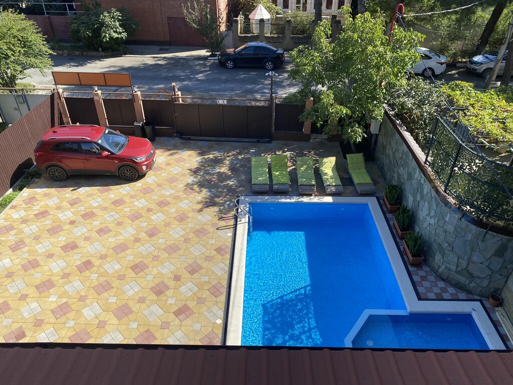 Хорошая гостиница. Во дворе есть бассейн - очень чистый и с подогревом. У бассейна есть шезлонги. Кухня снаружи. Сушилки. В самом отеле 3 этажа. Номер комфортный, красивый, уютный. В номерах есть холодильник, пимьменный стол, телевизор, душевая, шкаф, сейф и другое. Советую.