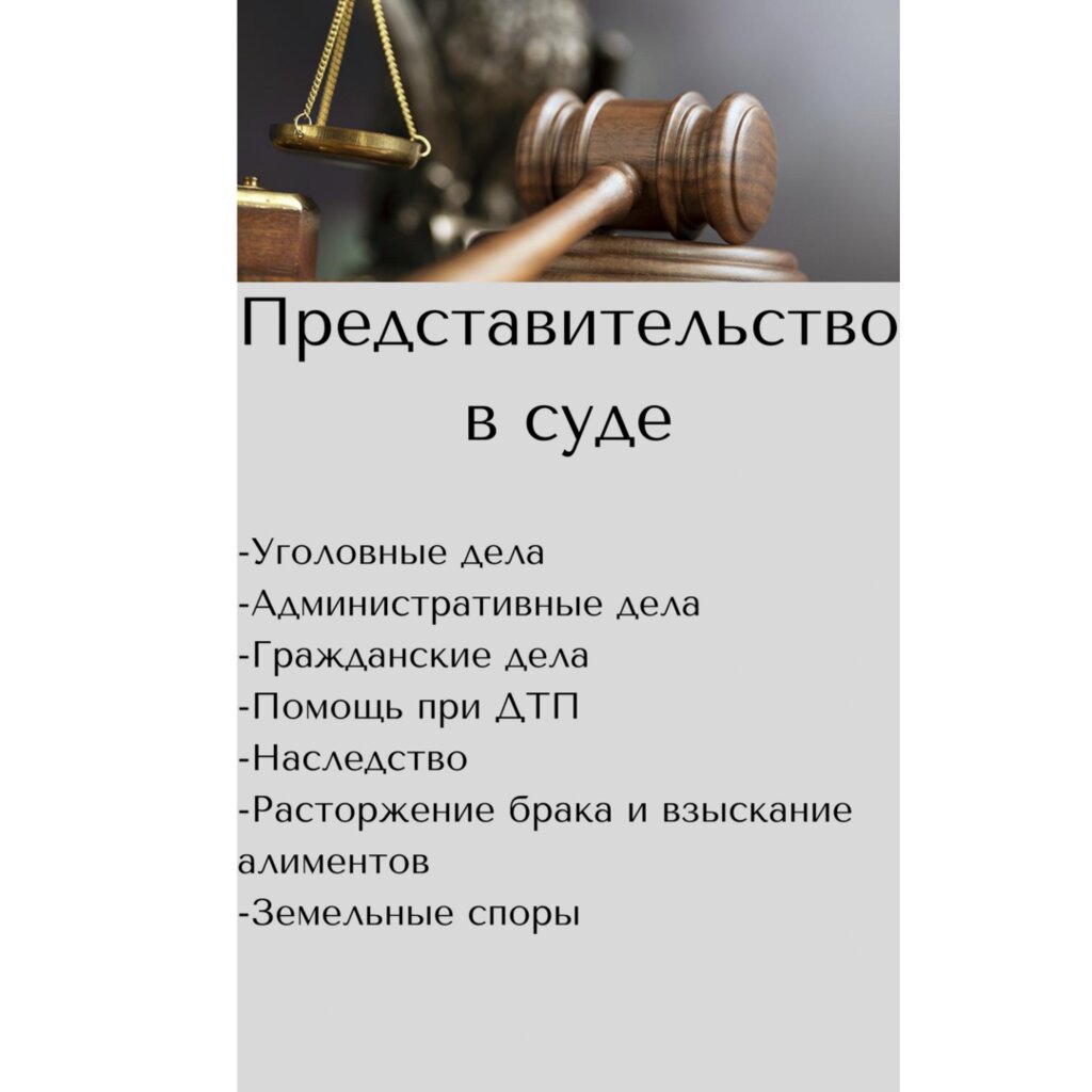 Individual sevices:personal lawyer, military service, family law, inheritance law, labor law, housing law, disputes with banks and credit institutions, copyright protection, judicial fact-finding, transaction support, consumer protection, compensation for injury, land law and real estate, criminal lawyer, bankruptcy, auto lawyer, civil law