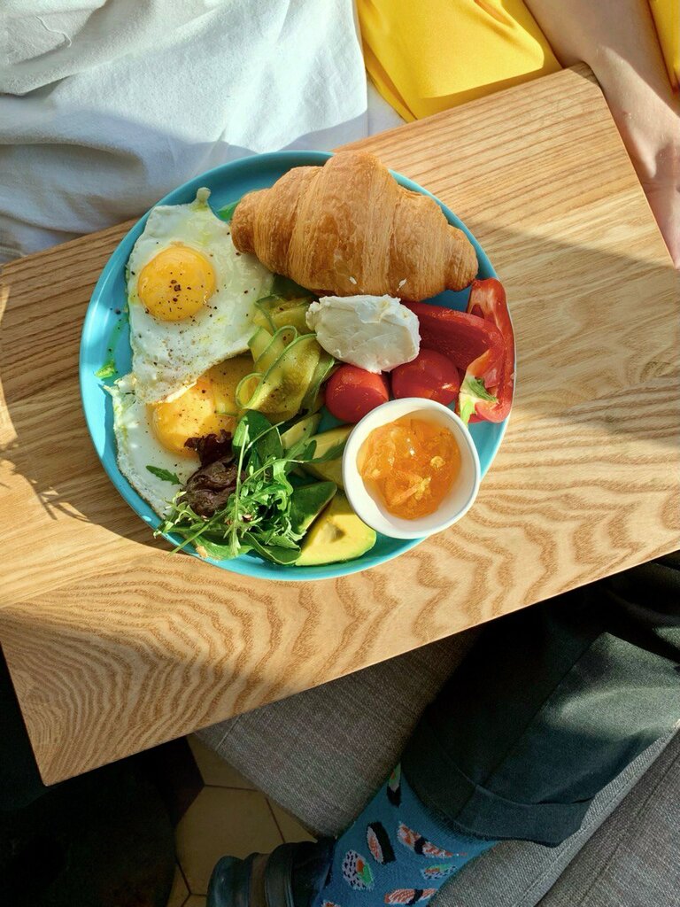 Решили заглянуть сюда на завтрак и не пожалели. В 11 утра была полная посадка. Взяли сырники с кофейным муссом, медовик, завтрак: пара яиц, свежая зелень, поджаренный ремесленный хлеб с оливковым маслом из пекарни сети. Флэт уайт, сет эспрессо и капучино и смоки вишня. Персонал великолепно ориентируется в меню и особенностях блюд и напитков, уже после того как мы сделали заказ, девушка описывала паре за соседним столиком позиции из меню так, что мне казалось надо заказывать все, еле сдержался. Когда нам принесли напитки и еду, все стало понятно. Прекрасное сочетание свежих продуктов, красивой подачи и водоворота запахов, не оставили шансов на долгие посиделки, тарелки и чашки были опустошены за несколько минут. Во втором зале за кухней не хватает всё же воздуха, на улице шёл дождь, было душновато. Столики стоят довольно близко, стоит это учитывать, нас не напрягало. Заведение дог-френдли.