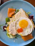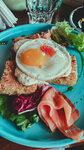 Пришли на поздний завтрак), ну а какой еще завтрак может быть в воскресенье, заказали картофельные оладьи с лососем и горчичным соусом, кофе (приятный, с нотками кислости и терпкости, отличный подбор зерна), и чай. Лосось мягкий, упругий, свежий, слобосоленый, салата в порции маловато да и сама порция стала меньше за последние 1-2 года. Что касается оладушек - разваливаются, мягкие с перебором, неудобно брать вилкой, или добавить яйцо в состав или сделать консистенцию картофеля плотнее - сейчас делают из пюре. В общем, цена/качество/атмосфера/популярность. 4/4/5/4
