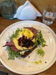 Очень приятное место, вежливый персонал, заказала яйцо бенедикт с ветчиной на хлебе - было очень вкусно и сытно: много компонентов, богатый вкус. Также брала лимонад и чизкейк с макадамией, тоже понравились.
