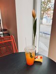 Божественно вкусный кофе 🤩 раф вишня-паннакота в самое ❤️ свежайшие сэндвичи, быстрая подача, вежливый персонал. Взяли с собой на пробу порционный кекс 🔝 из минусов парковка и маловато посадочных мест.