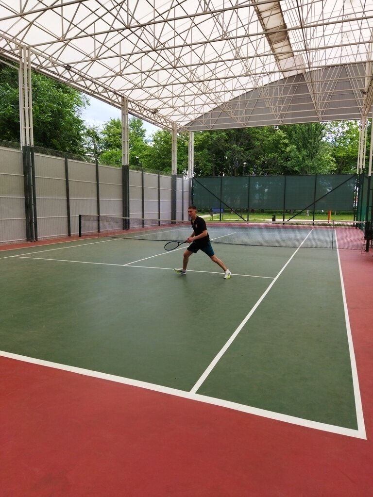 Занимаюсь там теннисом с грамотным тренером уже 4 год. Было покрытие хард, теперь трава. Корты крытые, что облегчает процесс игры. Корт находится в небольшом, но живописном сквере, рядом троллейбусная остановка, можно легко доехать почти из любого конца города. Советую посетить.
