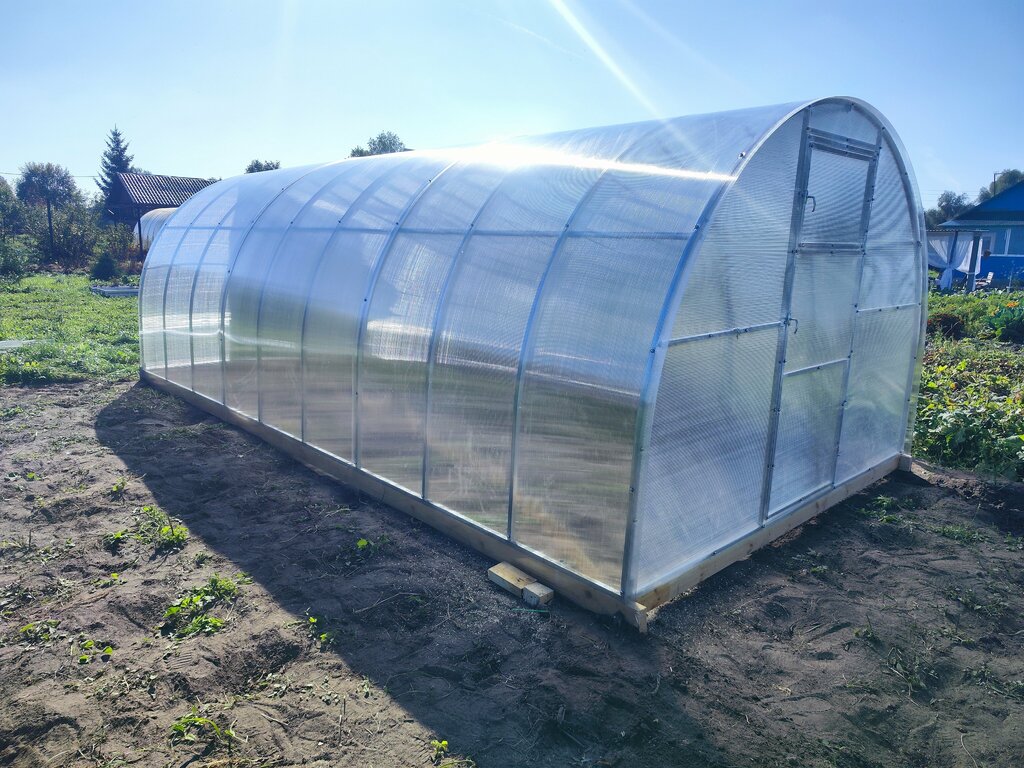 Теплица арочная. Дуги через 65см. каркас из оцинкованной профильной трубы 25х25. Две двери и форточки. Сотовый поликарбонат с защитой от ультрафиолета 4мм повышенной плотности.