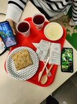 Только блинчик с клубникой для ребёнка спас оценку! Окрошка "домашняя" на квасе просто ... Мне обидно.... Честно в 2020 году я видимо подцепила корону и была лишена обоняния... Так вот, взяв тут окрошку, еще блин и двойную порцию, о чем сожалею, было чувство, что я опять поймала корону)) абсолютно без запаха и вкуса еда.... Ну это не окрошка((( и да, я убедилась, вкусы и запахи я все же чувствую. Это недоокрошка такая, не знаю, зелень должна чувствоваться , лучок, укропчик. А тут.... Не советую категорически!! И да, работаете медленно, увы, в нынешнем изобилии конкурентов, и при таких ценах, это минус. Фото прилагаю, чтобы не думали, что пишут конкуренты