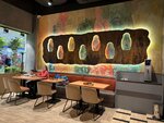 Есть своя зона на фуд-корте. Очень вежливый персонал. Много знакомых и любимых с детства блюд. Вкусно. Подают в керамике и с настоящими металическими приборами, а это плюс сто к домашней атмосфере)