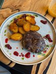 Рядом с кафе, но немного вглубь леса есть небольшой отель, в котором я была гостем несколько дней. В проживание были включены завтраки, которые предлагается выбирать накануне (2 блюда из предложенного списка + напиток). Любая из выбранных мной комбинаций оказывалась очень сытной и вкусной! Обеды или ужины у меня также проходили в этом кафе. Порадовали скорость подачи блюд (до 20 минут) и отзывчивость персонала. Со мной каждый день работала официант Дарья, внимательность и заботу которой хочется отметить дополнительно: она всегда встречала меня с улыбкой, быстро подходила к столу, чтобы я могла сделать заказ, а в конце интересовалась, понравились ли выбранные блюда. Также отмечу приятное оформление основного зала кафе: обилие живых растений, деревянные столы и стулья, необычные абажуры из соломы. Заказанные мной супы, горячие блюда, чаи и десерты были отличными по свежести и вкусовым характеристикам. Я рекомендую это кафе тем, кто проезжает мимо по Чуйскому тракту или останавливается в мини-отеле на этой же территории. Здесь можно вкусно и быстро поесть, цены соответствуют локации, качество на достойном уровне! Спасибо, что сделали мой отдых настолько приятным и вкусным!