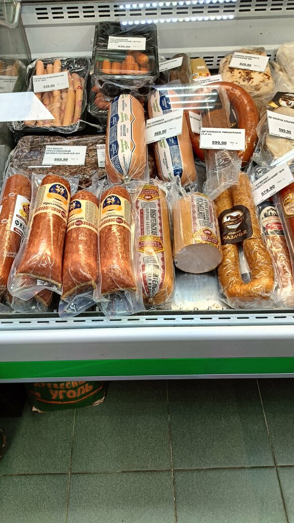 Мясной мир🥩🍖🍗 Здесь есть все, что нужно: мясо, птица, фарш и колбаса😋 Как свежее так и заморозка❄️ Молочка является нужным дополнением! Продавцы добрые и заботливые. Подъезд есть! Все как надо - рекомендую👍