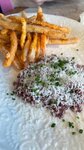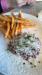 Все очень очень вкусно. Тартар бомба. Но вот разочарование пришла именно от пиццы. Она действительно тонкая, но без душная. Такое ощущение что катком прошлись по ней. Машинкой какойто. Супер плоское тесто и сам наполнитель. Не понравилось. Администратору и официантам - 5 звезд Еда - 5 звезд Пицца - 3 звезды