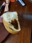 Выпечка довольно вкусная, однако. Взяла рогалик с грушей. На ценнике написано с грушей, и девушки сказали что с грушей. А они с вареным сгущеным молоком