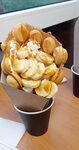 Вкусные вафли. При выходе, стараясь удержать равновесие на роликах, я нагнулась слегка, и вся начинка упала прямо на землю, под порог. Немного расстроилась, но девушки не растерялись и бесплатно мне положили начинку заново. Спасибо им за это, настроение не испортилось) пятно сразу вытерли, чтобы другие не вляпались. Другие товары не пробовала, но за поддержку в такой ситуации ставлю 5 звёзд! Спасибо