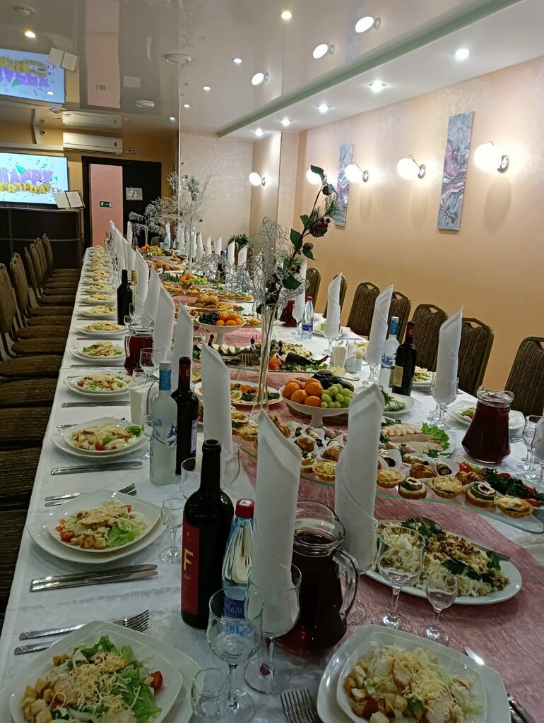 Чистое, просторное помещение, много новогодних фотозон. Кухня на 4, столы красиво оформлены. Обслуживание качественное. Были на школьном мероприятии, 6 класс, мне показалась программа с анимацией затянутой, дискотеки не было, мероприятие рассчитано на детей помладше. Очень громко. Много времени занимает уборка после конкурсов. Разбросать фейерверки из ткани, потом собирать их, надуть шарики, потом лопнуть и собрать мусор как-то не очень занятие. В целом всё прошло хорошо, детям понравилось. Рекомендуем этот ресторан к посещению.