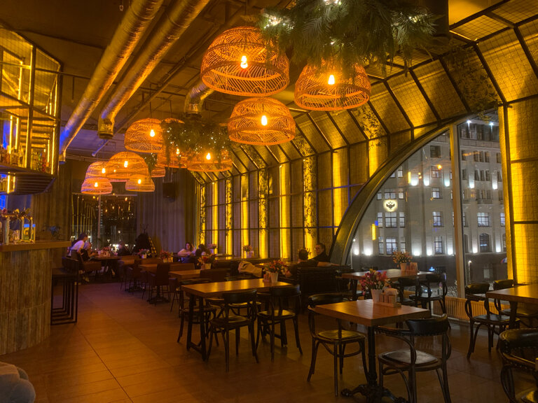 Тихо ,комфортно ,музыка не орёт. Очень приятные официанты . Неплохие алкогольные кактели . Еда вкусная , не долго ждали. Большой плюс что работаю до утра и можно спокойно сидеть никуда не спеша . Рядом выход из метро . Хорошее место ,рекомендую .