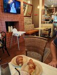 Кофе хороший, возле входа можно посидеть на скамеечках с подушками,можно и внутри(интересный интерьер, столики есть), но снаружи вечером зажигают цветные фонари и гирлянды.