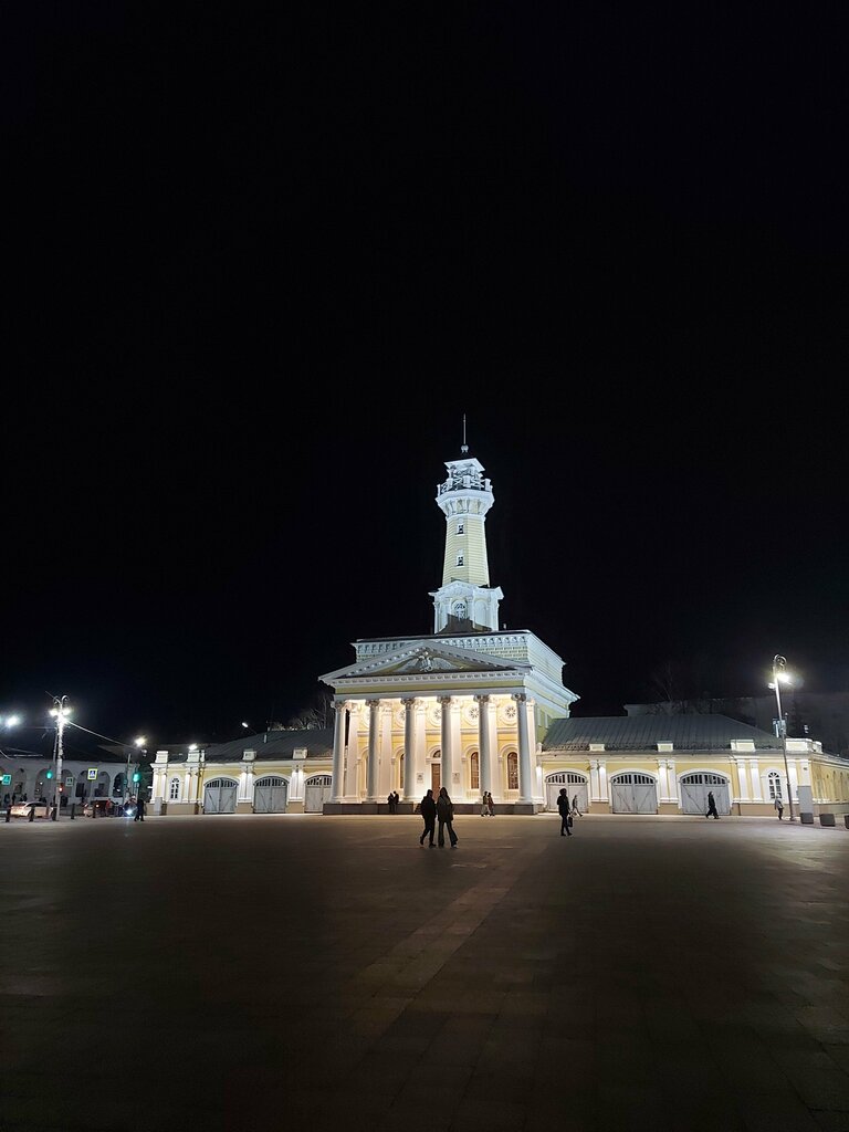 Пожарная каланча Рыбинска представляет собой впечатляющий образец гражданской архитектуры XIX века, расположенный в историческом центре города. Башня высотой 48 метров органично вписывается в архитектурный ансамбль старого города и служит одним из его главных символов. Здание каланчи, построенное в 1912 году, сохранило свой исторический облик благодаря качественной реставрации. Особого внимания заслуживает вечерняя подсветка, которая эффектно подчеркивает архитектурные детали башни и прилегающего двухэтажного здания пожарной части. Благоустроенная территория вокруг каланчи с удобными скамейками и стилизованными фонарями создает комфортное городское пространство для отдыха. Примечательна контрастная отделка здания – темный кирпич башни гармонично сочетается с белоснежными колоннами и карнизами основного строения. Расположение каланчи на пересечении исторических улиц делает её удобным ориентиром для горожан и туристов, а её архитектурный облик служит наглядным примером рационального модерна начала XX века. В настоящее время это сооружение не только выполняет роль архитектурной доминанты, но и является популярной достопримечательностью, привлекающей внимание фотографов и ценителей исторической архитектуры.