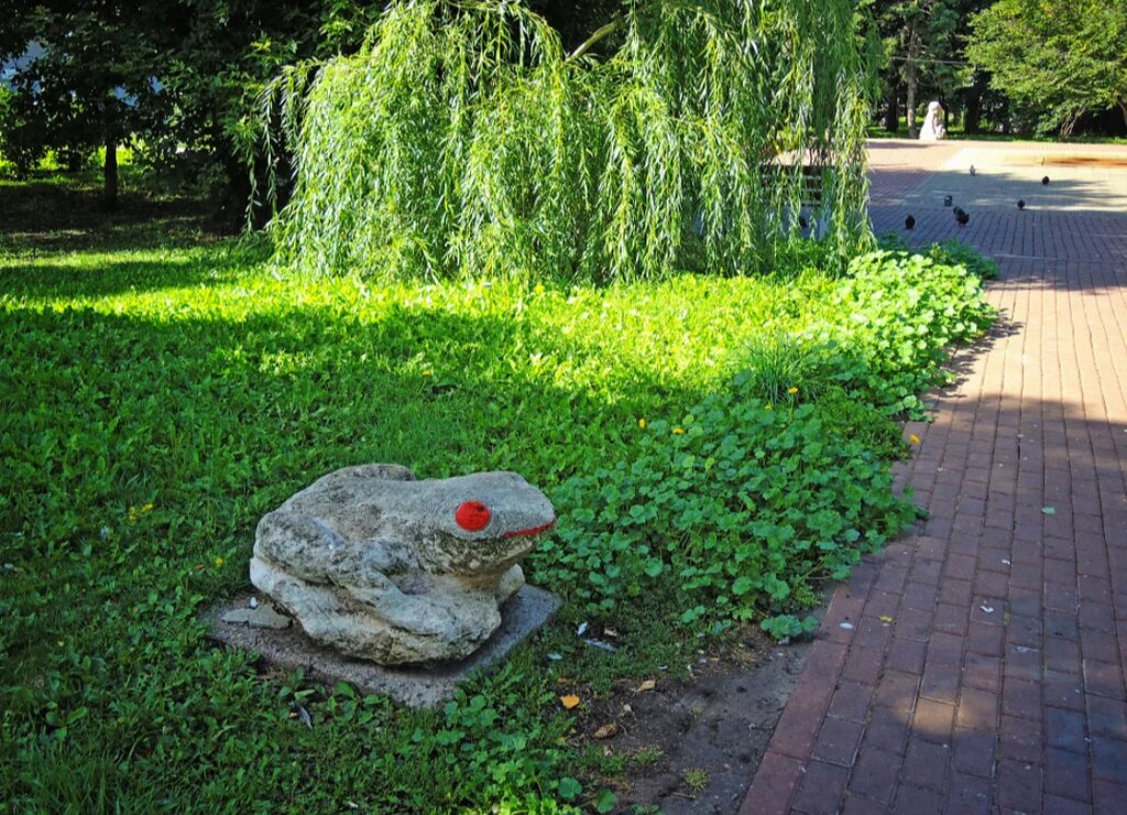 Интересная задумка скульптора. Только не понятен замысел. Стоит она там уже давно, одна и скучает ей бы на пару принца лягушонка что ли слепили и поставили рядом, не так скучно бы было.