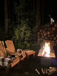 Уединенное, очень тихое и скрытое от посторонних глаз место для отдыха — огромная чан-купель и баня с панорамным окном прямо на берегу реки Вуокса. Так же доступны кресла-шезлонги, чаша для костра, мангал, стол для пикника и лодочка.