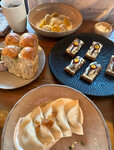 Сыр с плесенью с джемом из черноплодной рябины и изюма Козий сыр с карамельной клюквой Камамбер с рагу из груши, кураги и тархуна Крокеты из сыра с джемом из яблок и апельсина